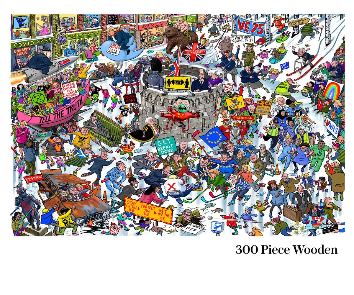 This brilliant jigsaw puzzle from the Telegraph wraps up the year of 2020, designed by the talented cartoonist, Blower! In this jigsaw puzzle, you will find all kinds of themes from the year that is certainly one for the history books; 2020. Including the Covid Arms‚ pub, mixed messages on signs, Captain Tom skiing down the mountain and Trump flying the giant logo of his favourite social media site. These are just some of the people and topics you will find in this fantastic illustration, that truly marks what a memorable year 2020 has been.