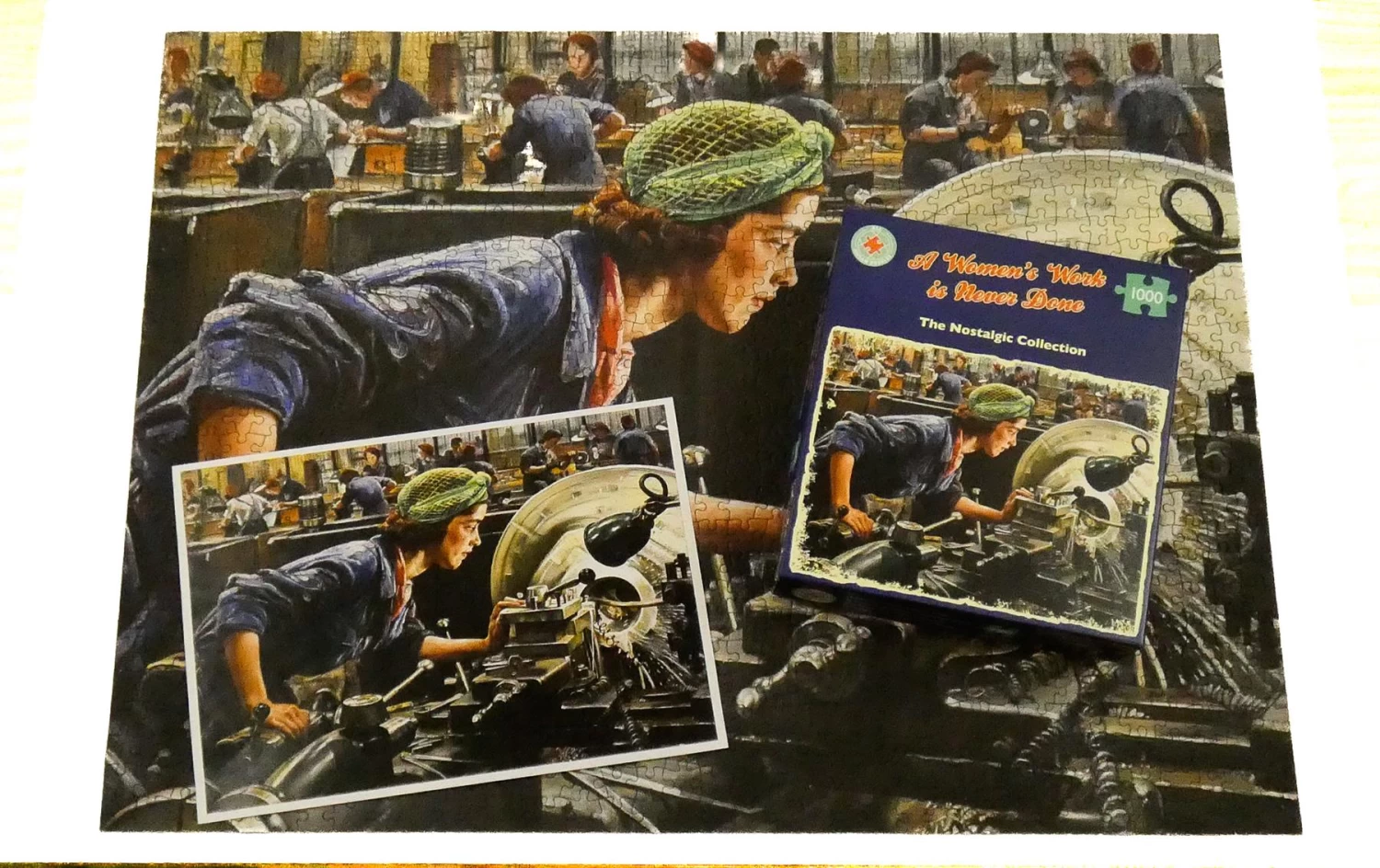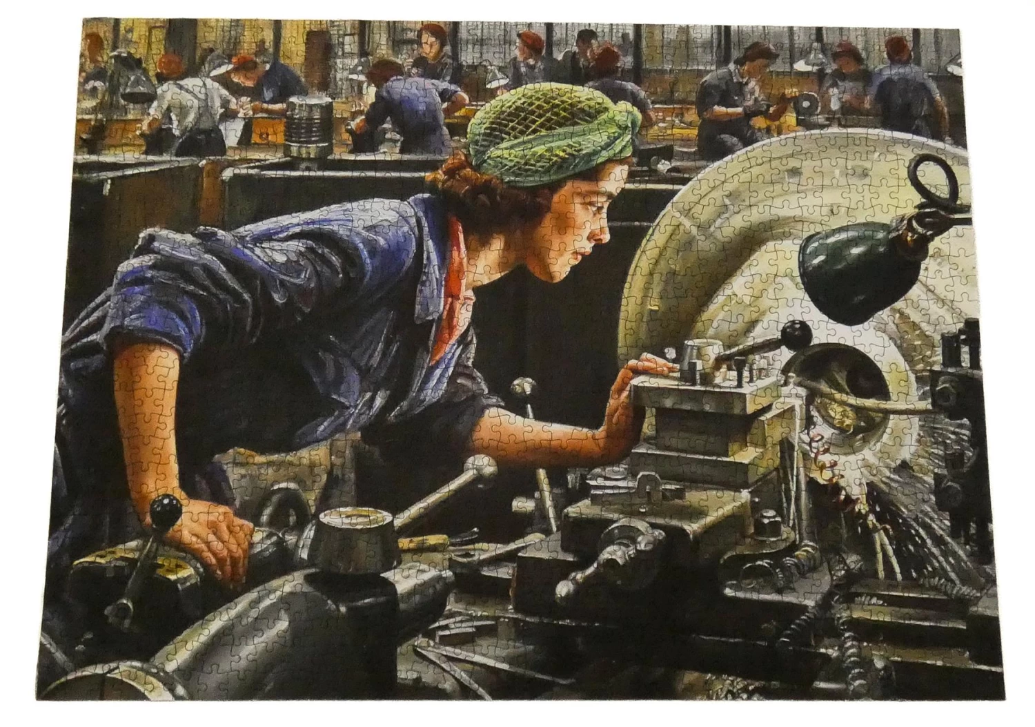 During World War 2, women were called up to aid the war effort while the men were fighting on the front lines, contributing as mechanics, engineers and munitions workers. This jigsaw puzzle features a group of skilled women machining parts in a wartime factory.