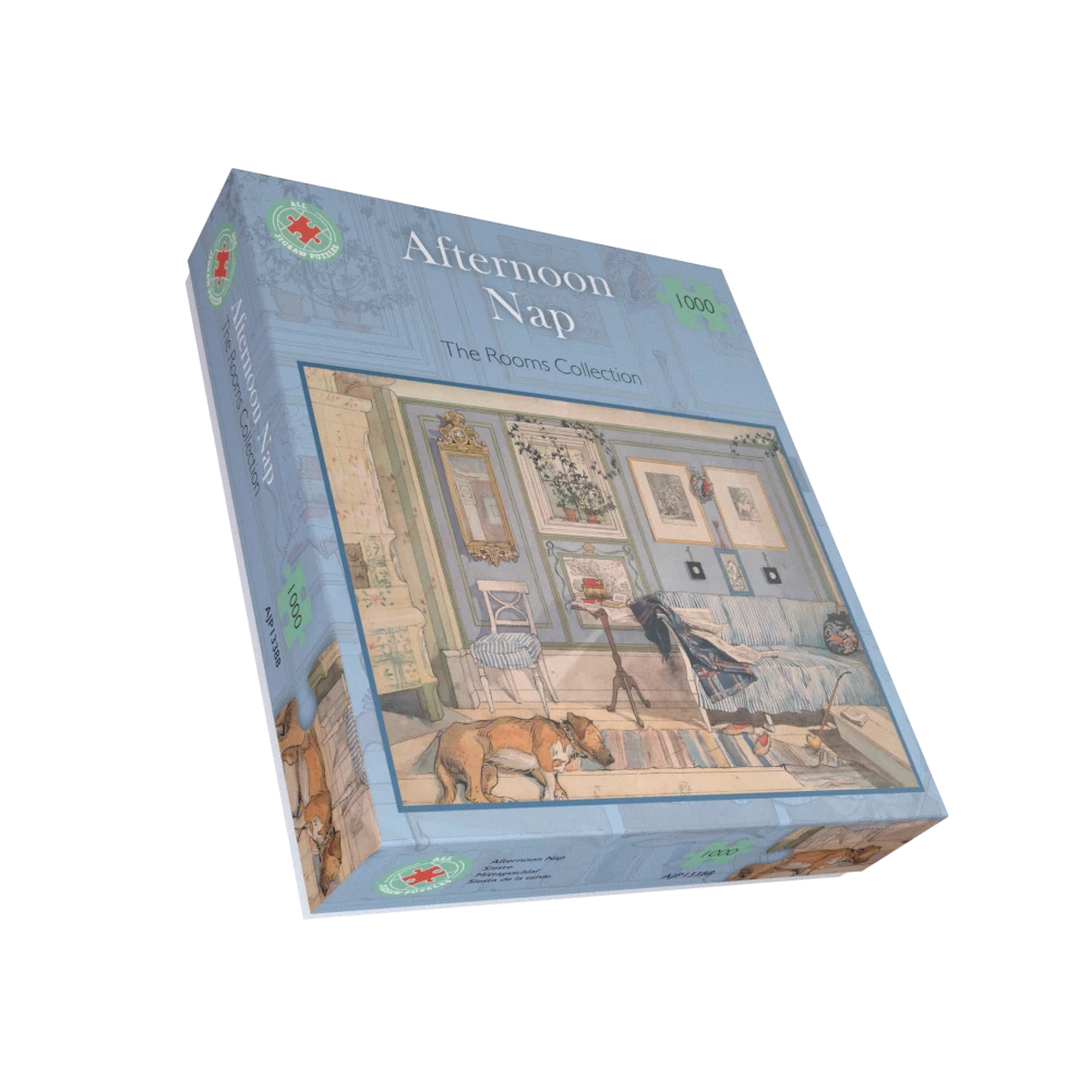 The Afternoon Nap is the first in our ‘Rooms Collection’. This beautiful jigsaw puzzle that features Merlin the peaceful hound who can be seen all snuggled up and dreaming of his next outdoor adventure. This cosy front room is filled with natural light, stripes and soft furnishings. The perfect place for a bit of calm and relaxation after a busy day at work. This puzzle reminds us how important it is to allow time to relax and recharge those batteries.