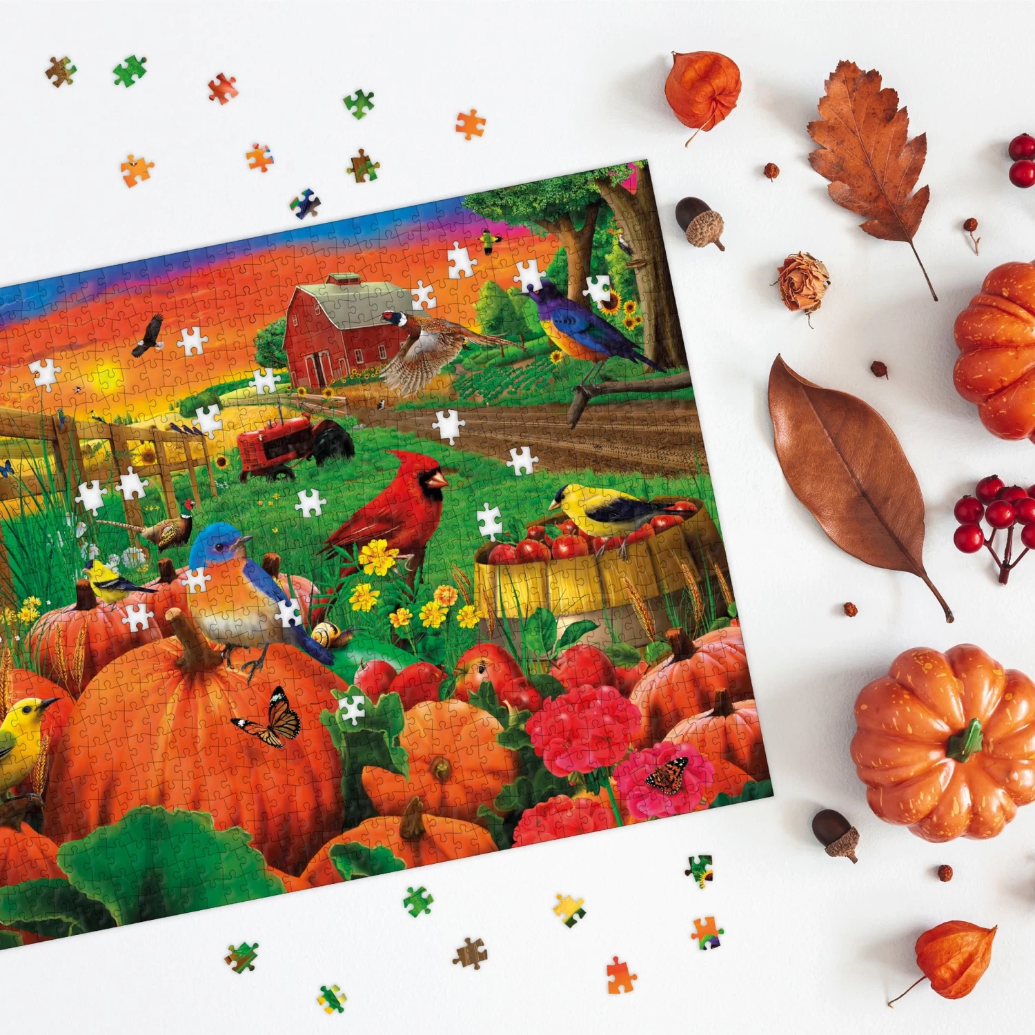This Birds of Pumpkin farm 1000 piece jigsaw puzzle will really get you into the cosy Autumn and Halloween mood.