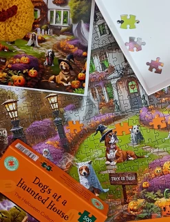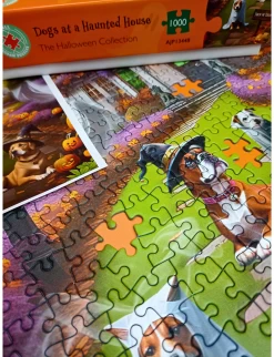 Enjoy Freakishly good fun with dogs at a Haunted house available as 1000 or 500 piece jigsaw puzzle.
