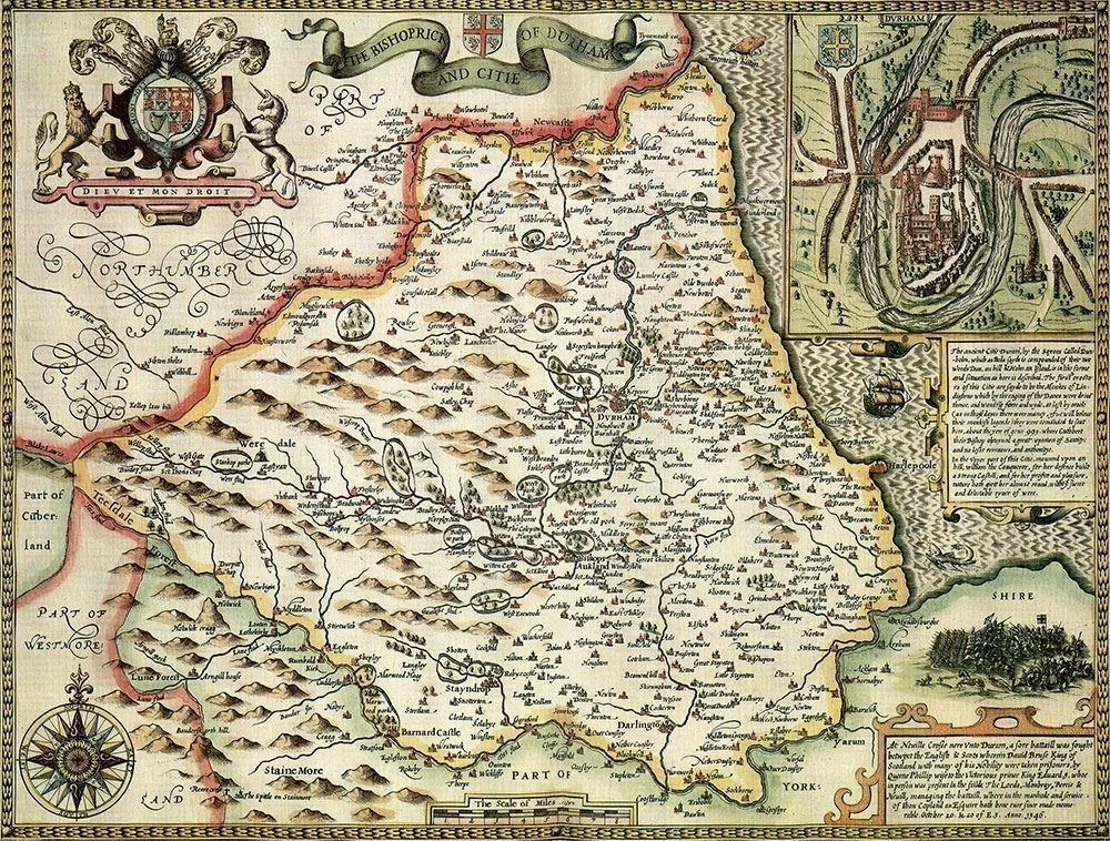 This is a superb jigsaw puzzle featuring the county of Durham in approximately 1610.
