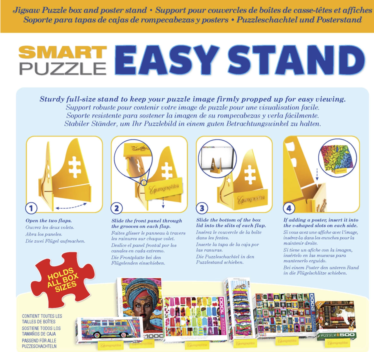 Finally an innovative and convenient way to hold up your puzzle box image while working on your puzzle.ย