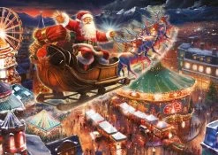 The second puzzle takes you on an unforgettable adventure, capturing the magic of Santa Claus taking off across the night sky in his sleigh, reindeer leading the way through a starlit winter landscape. Beneath you can see bright lights and merriment of the Winter wonderland glow. Experience joy as you piece together these delightful traditional Christmas puzzles.