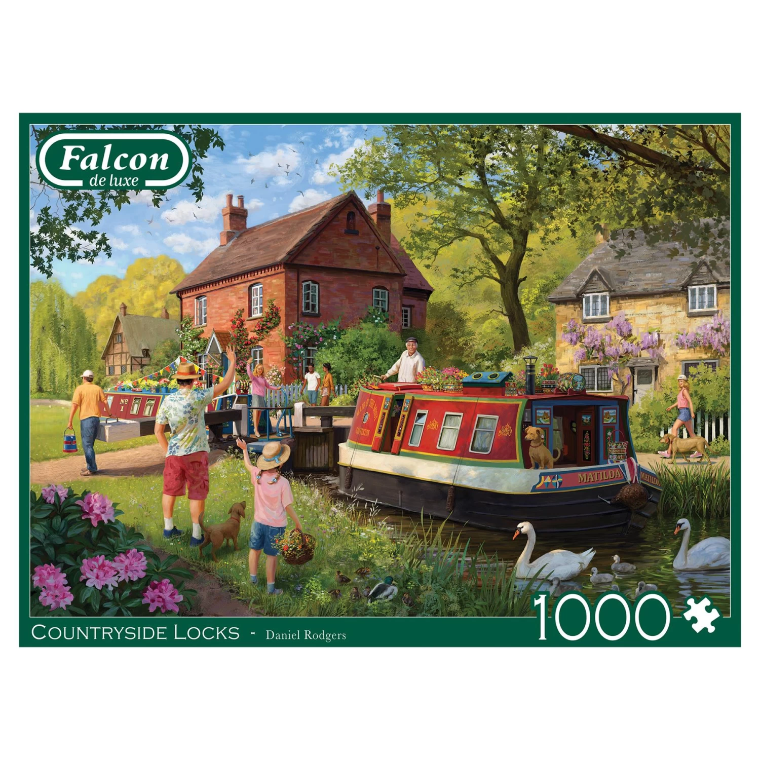 Piece together a beautiful countryside scene with this 1000 piece jigsaw puzzle from Falcon de luxe! Watch the barge glide along the water as people wave from the banks and swans swim by. Let the peaceful scenery inspire you as you solve this puzzle.