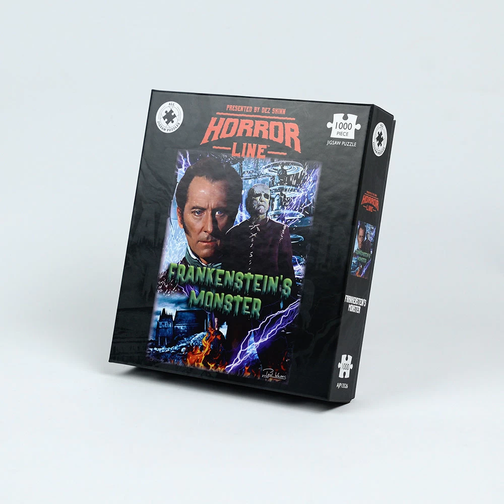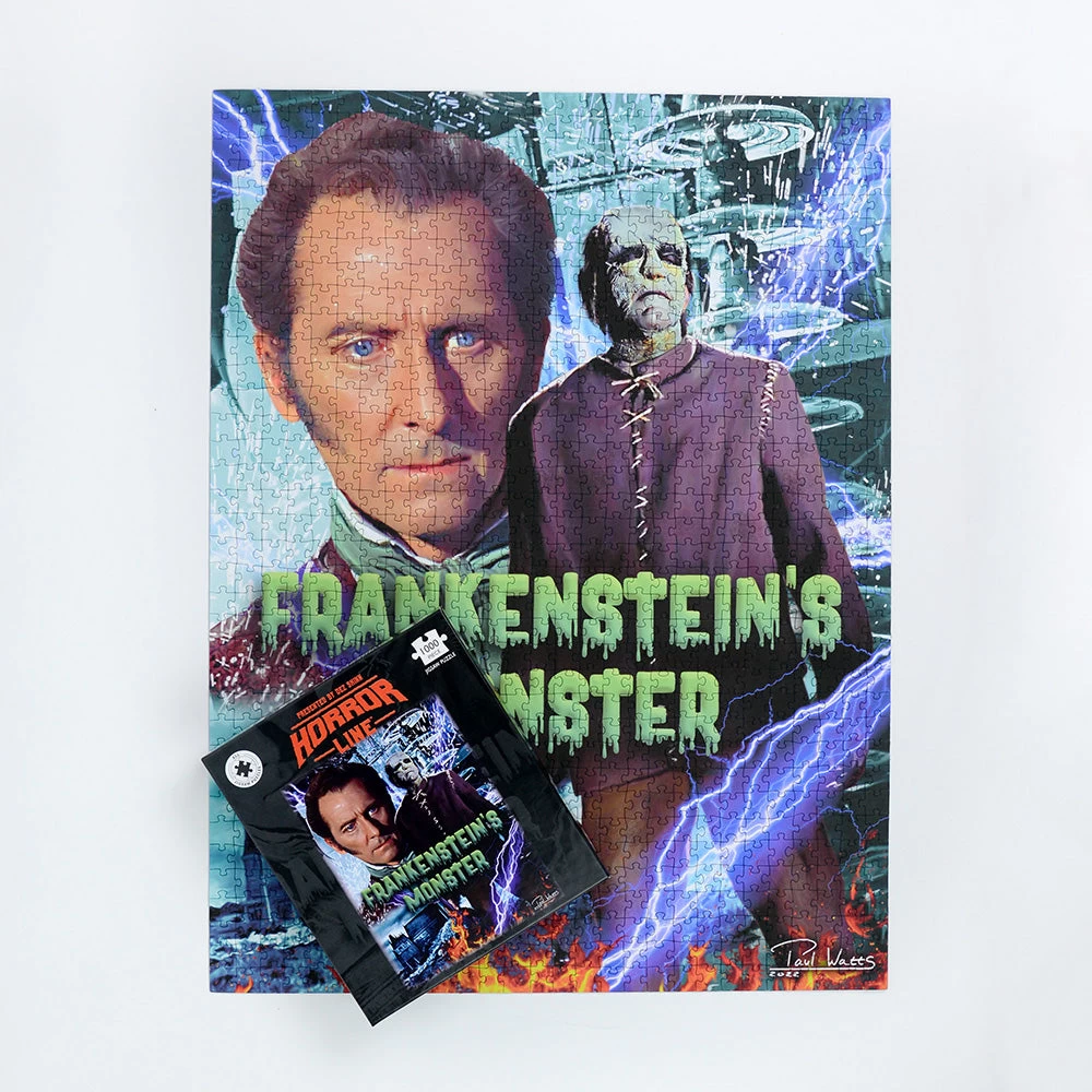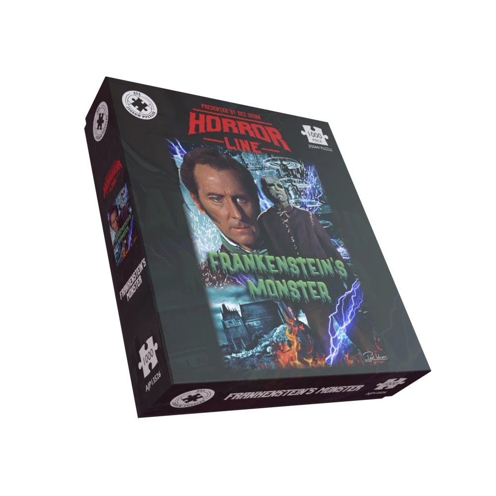 This captivating jigsaw puzzle features the spine-chilling artwork by Paul Watts, taken from Hammer Films’ 1964 chiller The Evil of Frankenstein. First showcased in the celebrated US magazine Little Shoppe of Horrors, this jaw-dropping image will thrill horror aficionados and haunt their puzzle nights!