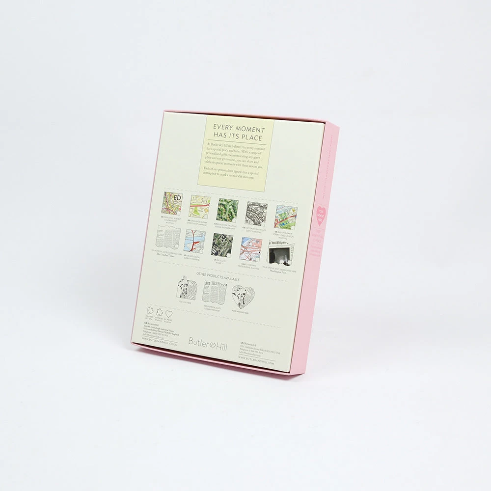 Your custom map jigsaw puzzle will feature 1.9mm thick pieces, carefully packaged in a beautiful box made from recycled materials. A guide print is included to assist you in assembling your detailed map jigsaw.