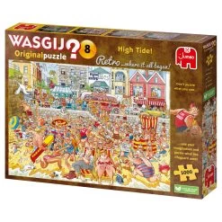 Unleash your inner adventurer with the Wasgij Retro Original 8 High Tide! Jigsaw Puzzle. Join the crowd at a bustling British beach and experience the hilarity that ensues when the tide comes in. With 1000 pieces, this puzzle will challenge and inspire you to take risks and embrace the silly side of summer.