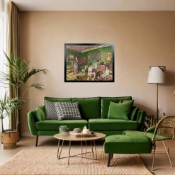 This quiet domestic scene shows all the warmth and intimacy of Vuillard’s late paintings. In this painting we are placed in the elegant drawing room of a Parisian home with the Wormser family. Standing to the left is Madame Wormser, née Olga Boris, the wife of French banker André Wormser. Their four children – Diane, Sabine, Dominique and Olivier – are grouped on the right.