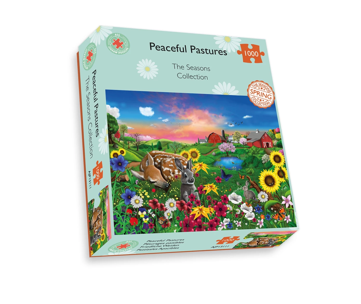 Peaceful Pastures is a colourful, vibrant and Spring filled jigsaw puzzle, illustrated by Gerald Newton.