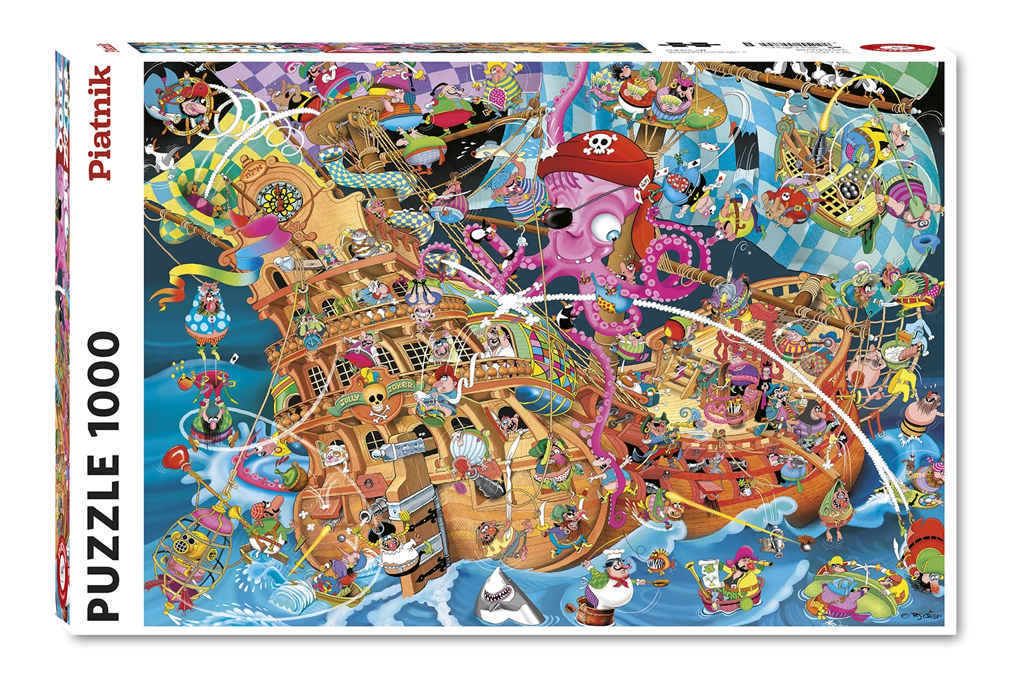Bursting with vibrant colours and wacky details, this puzzle brings to life a hilariously chaotic pirate ship filled with quirky characters and mischievous antics. From the comical octopus captain to the daring pirate crew and their outrageous high-seas escapades, every piece adds a splash of fun to your puzzling journey. This lively masterpiece guarantees hours of laughter, challenge, and pure entertainment. Dive into the zany world of the Pink Pirate and piece together a treasure trove of nautical nonsense!