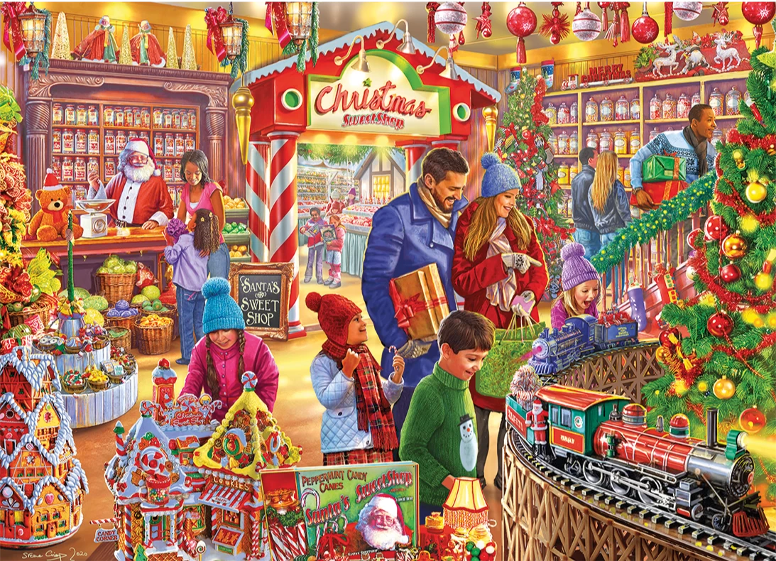 Step into Santa’s Sweetshop and treat yourself to a world of festive delights in this charming 1000-piece Christmas jigsaw puzzle by artist Steve Crisp.