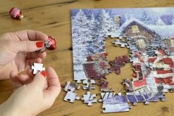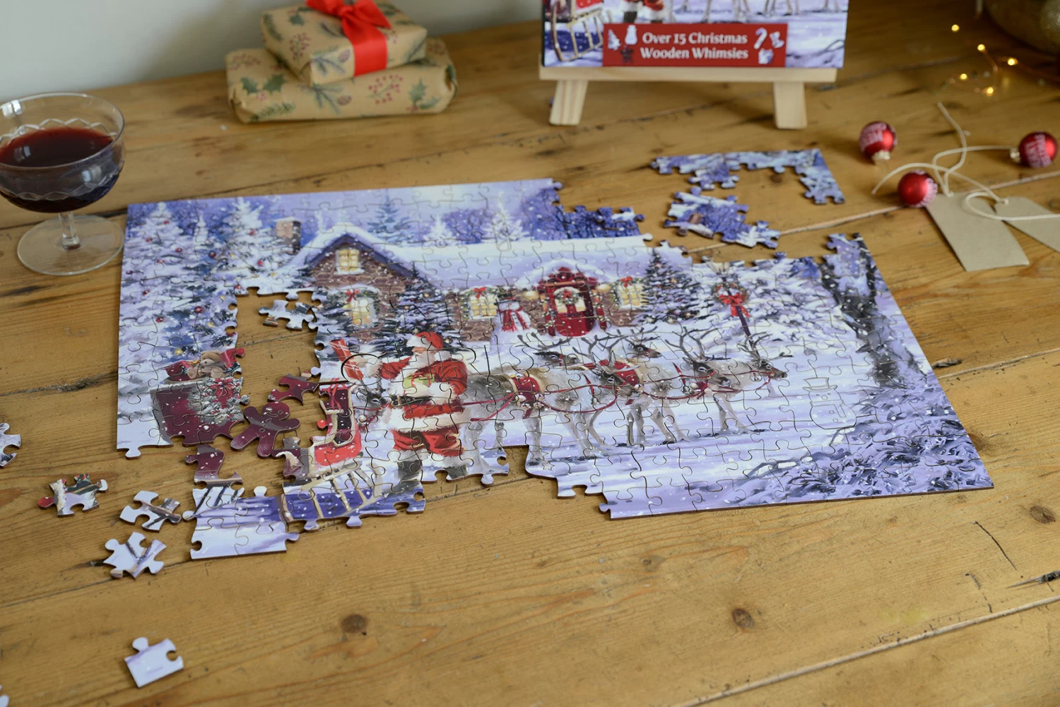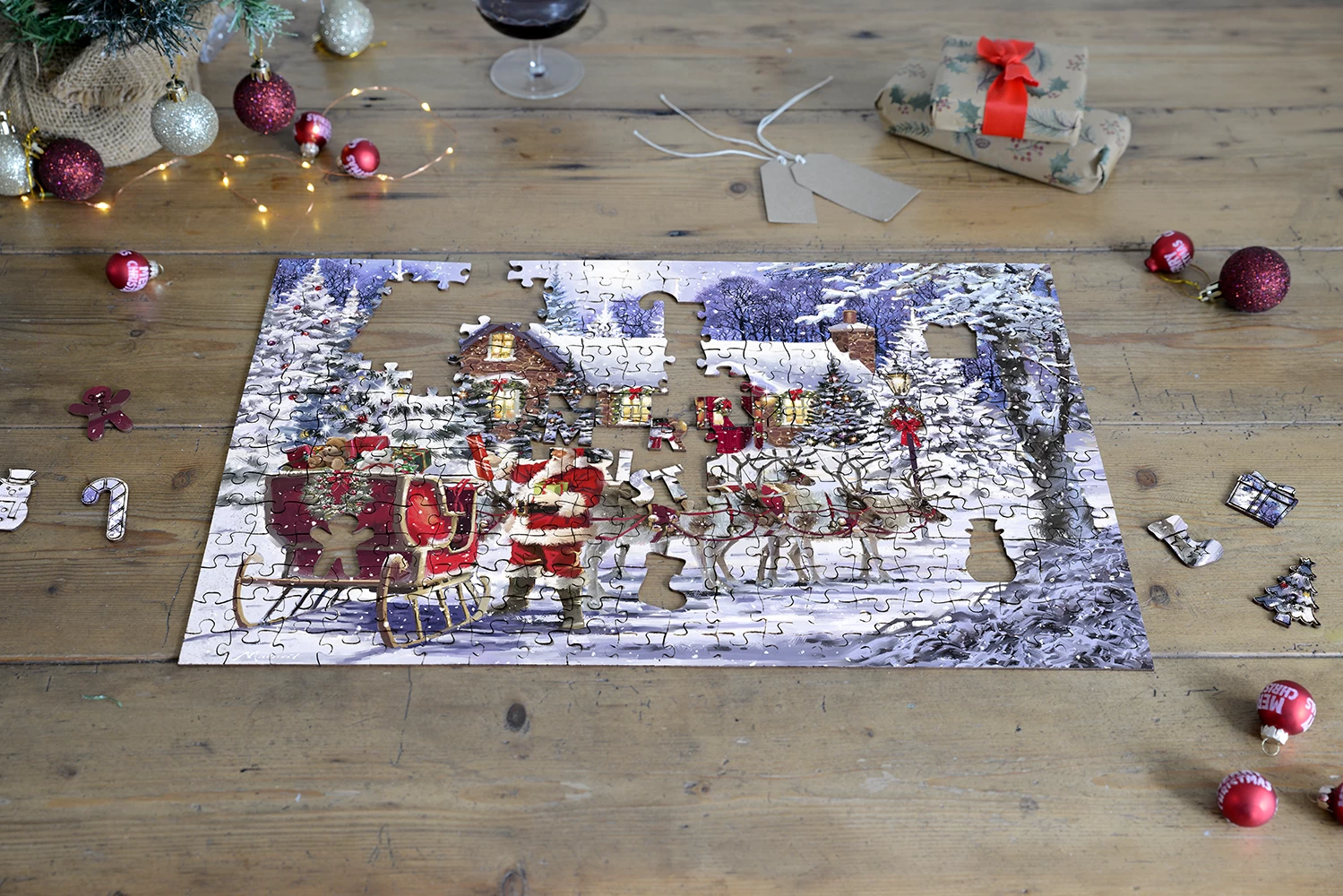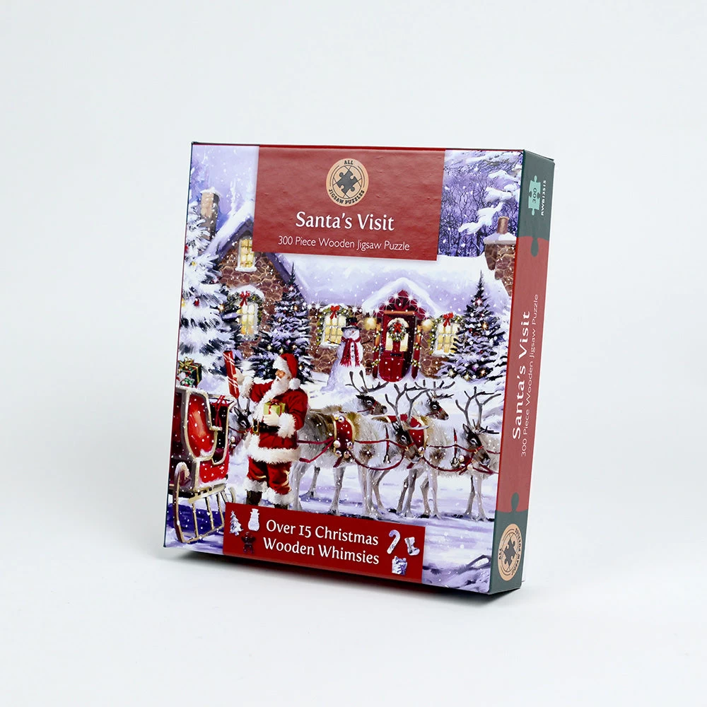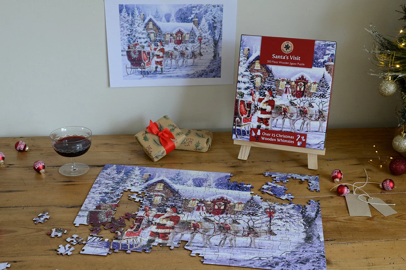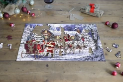 Immerse yourself in a winter wonderland with this stunning nostalgic scene ‘Santa’s Visit 300 Piece Wooden Jigsaw Puzzle’