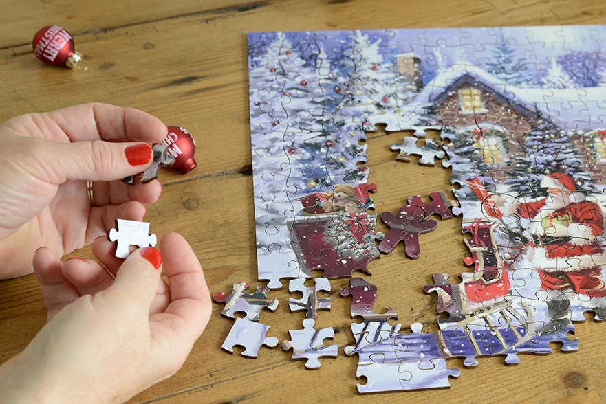 A charming cottage awaits him, wrapped in fluffy, white snow, tucked away deep in the woods with a warm, illuminating glow. An enchanting Christmas puzzle to snuggle up with this festive season, the perfect puzzle to piece together during those cold, dark Winter evenings.