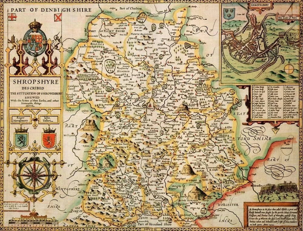 This is a superb jigsaw puzzle featuring the county of Shropshire in approximately 1610.
