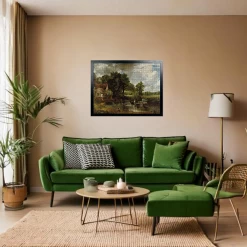 Painted by John Constable and dating back to 1821, The Hay Wainโ features a site in Suffolk, near Flatford on the River Stour. The hay wain is a type of horse-drawn cart, that can be seen in the water in this painting. The horses pull the cart through the water to get to the other side. To the left, a beautiful cottage covered in greenery watches over the lake, which stands behind Flatford Mill. The cottage and river are still very much the same as they were in this painting in 1821. A very peaceful and relaxing jigsaw puzzle to piece together.