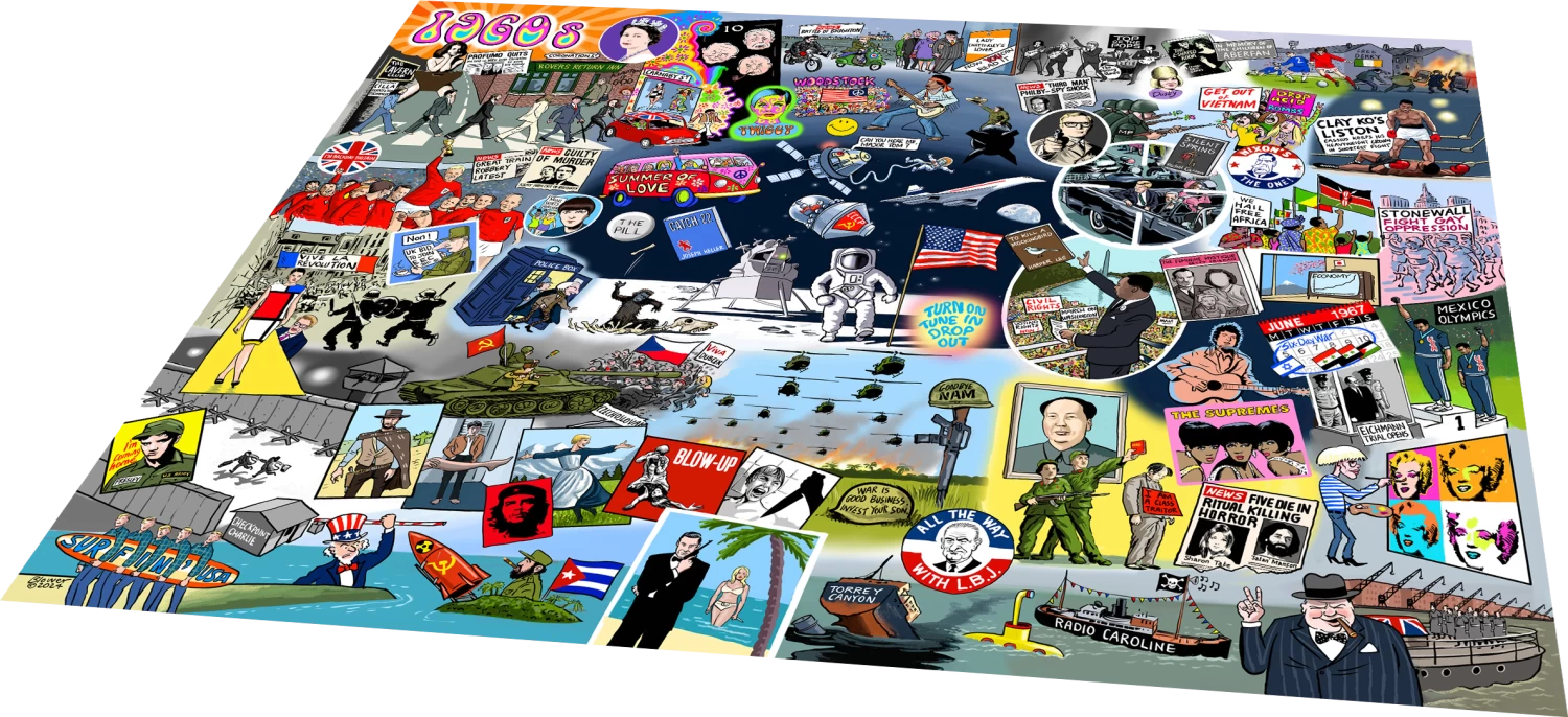 The seventh ‘According to Blower’ puzzle has arrived! Enter the swinging 60s with The Telegraph’s brilliant new decades 1960s 1000 Piece Jigsaw Puzzle. This iconic era has been brought to life by the super talented cartoonist Patrick Blower.