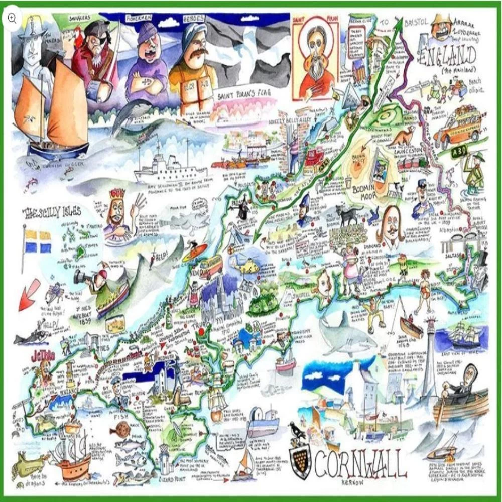 Cornish bundle Includes Tim Bulmer’s Map of Cornwall 1000 Piece Jigsaw Puzzle & Tea Towel! If you’re a fan of golden beaches and pasties you will love this Cornwall Gift Bundle!