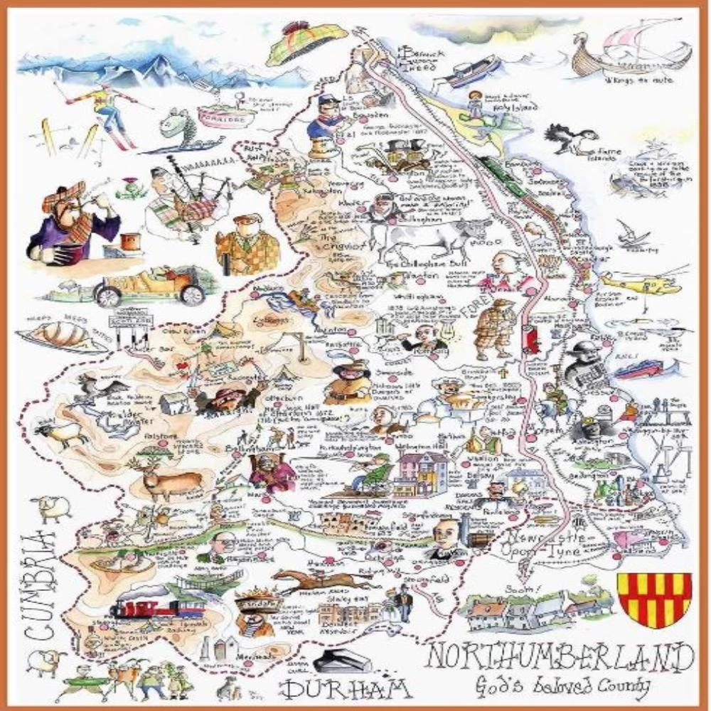 This very funny jigsaw puzzle of Northumberland is full of details and quirks that the county is famed for. In this map jigsaw puzzle you will find a man with a burning tar barrel on his head, Britain’s first bird research station and Alnwick Castle, home to the Dukes of Northumberland! If you love Northumberland or what to get to know the hilly region better this is a fantastic gift for friends and family!