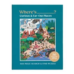Where’ _? Curious and Far-Out Places 500 Piece Search and Find Puzzle by Galison transports you to a whimsical world full of hidden treasures, quirky objects, and delightful surprises.