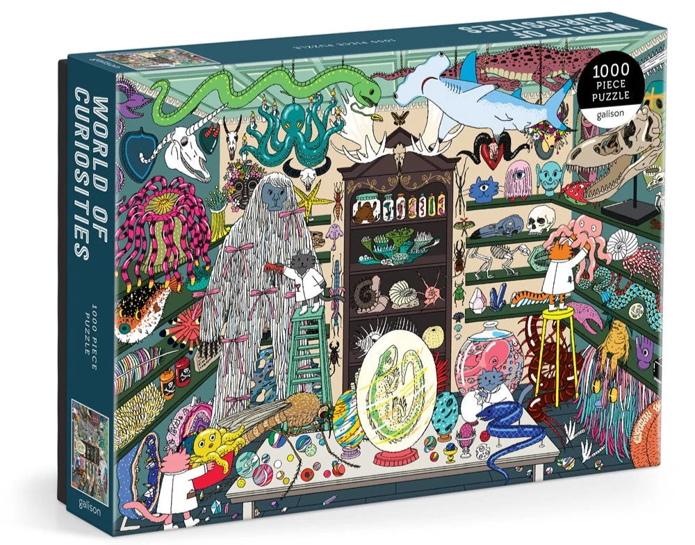 The World of Curiosities 1000-Piece Puzzle by Hye Jin Chung takes you inside a mysterious curiosity shop filled with quirky, eerie, and magical treasures.
